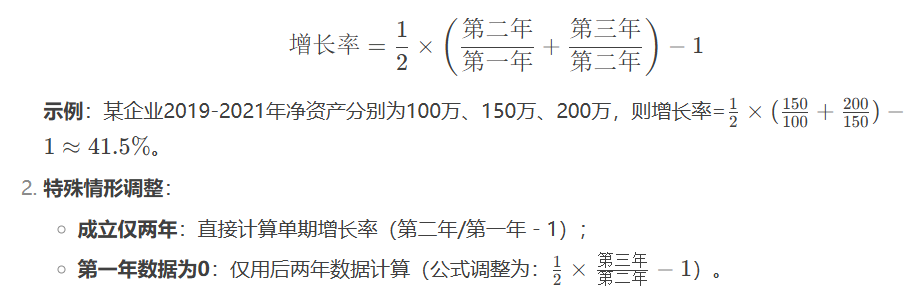 连续负资产:净资产为负数时按0计算,若连续三年为负,增长率判定为0分。
