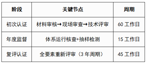 ✅ 认证周期:常规产品3-6个月(含体系运行期)