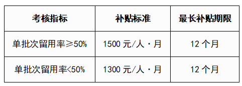 注:年度单人最高补贴金额1.8万元,按实际见习月份累计计算