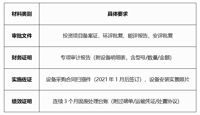 ▶ 需提供设备采购合同、付款凭证及现场实景照片