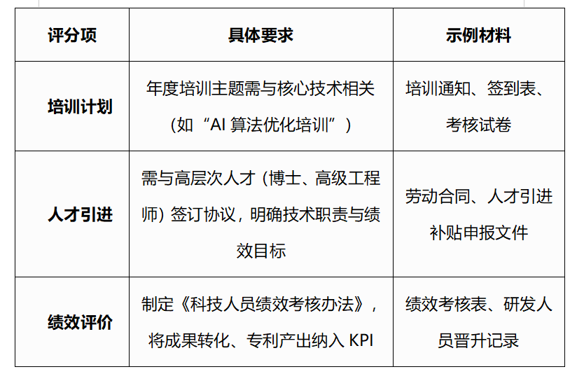 研发组织管理水平评分强调“制度完整性”与“执行真实性”。企业需系统性整理四类制度文件,并通过付款凭证、会议记录、考核文件等形成完整证据链,避免因“有制度无执行”或“有合作无成果”导致扣分。